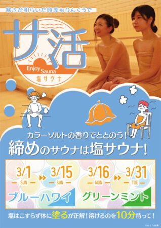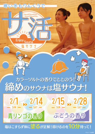 りんくうの湯のサウナは、「塩サウナ」と高温の「ドライサウナ」がございます。ドライサウナでは毎日、ロウリュを実施!外気浴のできるデッキチェアも完備しています。心地よく発汗し、充実したサ活をお楽しみいただけます。