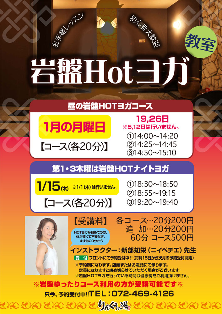 岩盤HOTヨガ : 1月の月曜日(1月19日・26日※5日、12日は行いません)